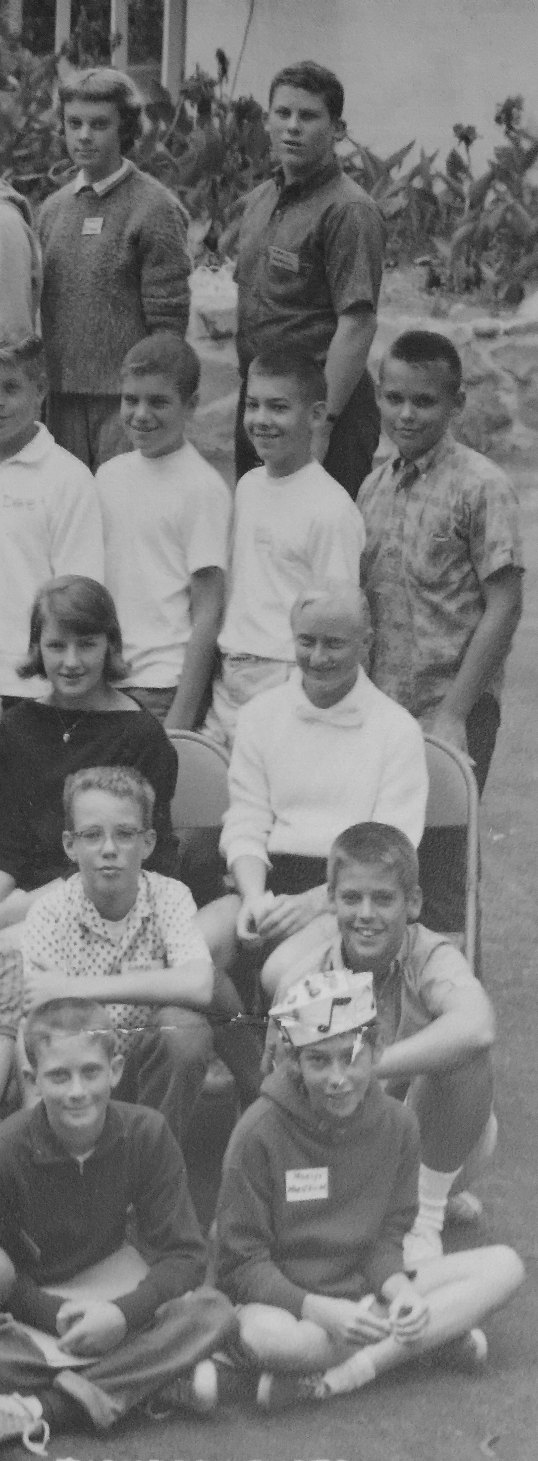 Mr. Lawrence B. Bellis, music director at La Cañada Junior High School, organized an annual summer band and orchestra camp beginning in 1957. It took place shortly before the school year started. Incoming, continuing, and outgoing students were invited. Group leaders, identified by their white sailor’s caps, were alumni. The very youngest student attendees, going into the 7th grade, were not quite 12 years old, and graduates heading for 10th grade at John Muir High School were typically 15.